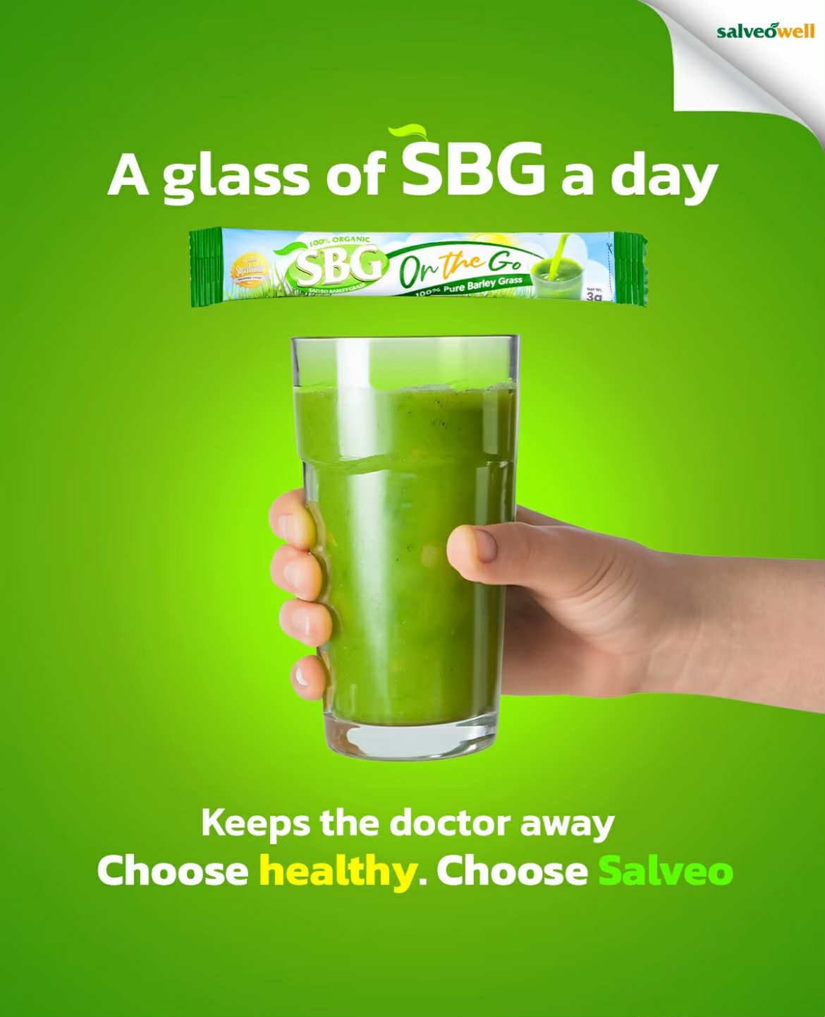 SBG stands for Salveo Barley Grass, a specially selected variety known for its high nutrient density and freshness. Grown in pristine conditions and gently processed to retain maximum benefits, it's designed for those who care about what goes into their bodies โ and how it makes them feel.